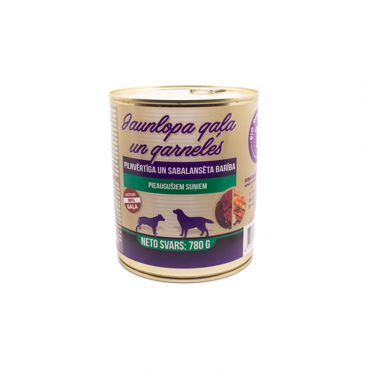 Konservi pieaugušiem suņiem ar jaunlopa gaļu un garnelēm 800g