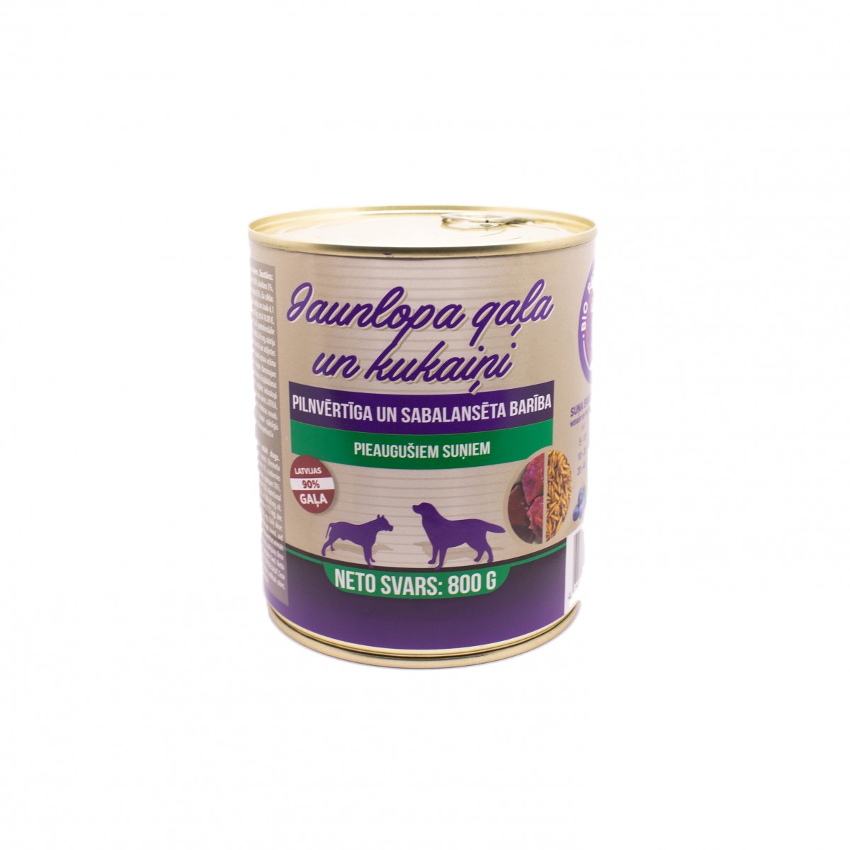 Konservi pieaugušiem suņiem ar jaunlopa gaļu un kukaiņiem 800g
