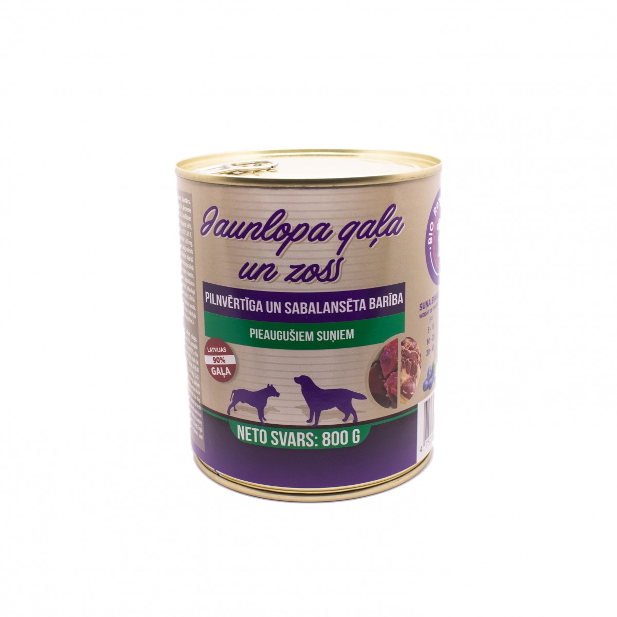 Konservi pieaugušiem suņiem ar jaunlopa un zoss gaļu 800g