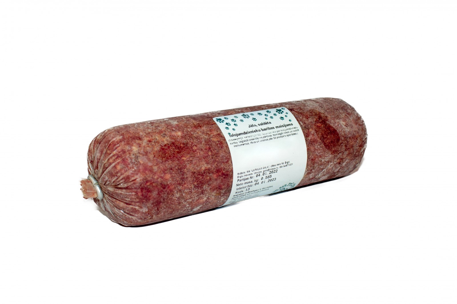 Sastāvdaļas: liellopa kuņģis 50%, teļš 10%, gaļa 10%, akna 10%, tesmenis 10%, samalti kauli 10%
