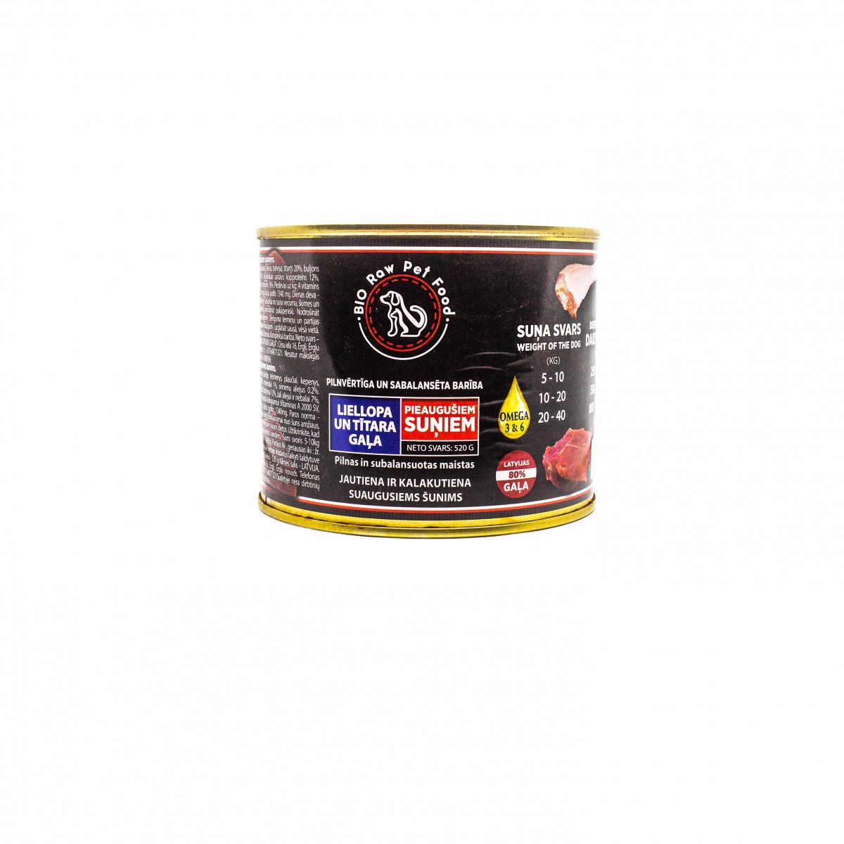 Konservi pieaugušiem suņiem ar liellopa un tītara gaļu 520g