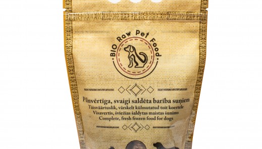 Sastāvs: tītara gaļa 30%, liellopa gaļa 30%, aknas 10%, tesmenis 10%, sasmalcināti kauli 10%, burkāns 8.9%, saussēržu ogas 1%, čīa sēklas 0.1%