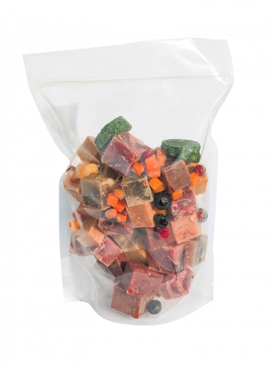 Sastāvs:Liellops (gaļa, akna, kuņģis, plauša, tesmenis), ķirbis, burkāns, spināti